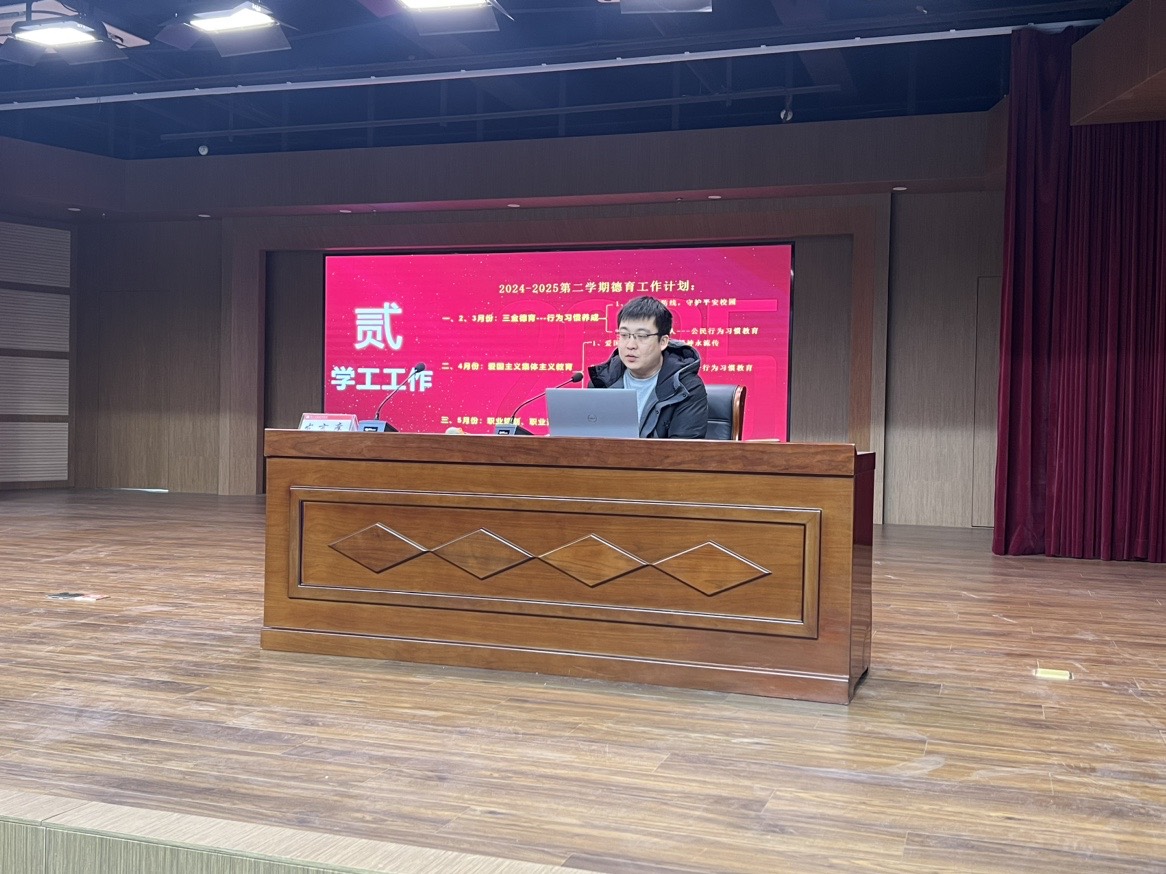 随后,翟浩淼主任对学工工作进行了详细布置。他回顾了过去一学期学工工作取得的成绩,同时也指出了存在的问题与不足,布置了本学期班主任德育工作。他强调,学生工作要以学生为中心,关注学生的思想动态、心理健康和成长需求,加强班级管理和学生干部队伍建设,丰富校园文化活动,营造良好的学习和生活氛围。