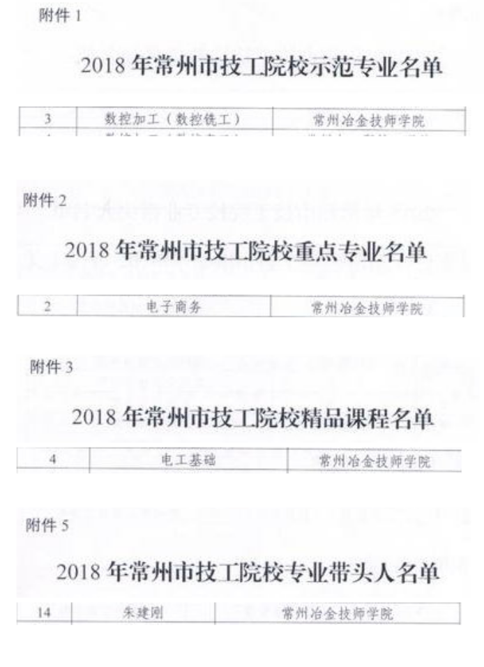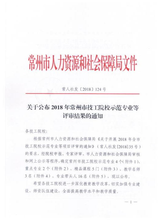 2018年常州市技工院校示范专业等项目评审结果的通知