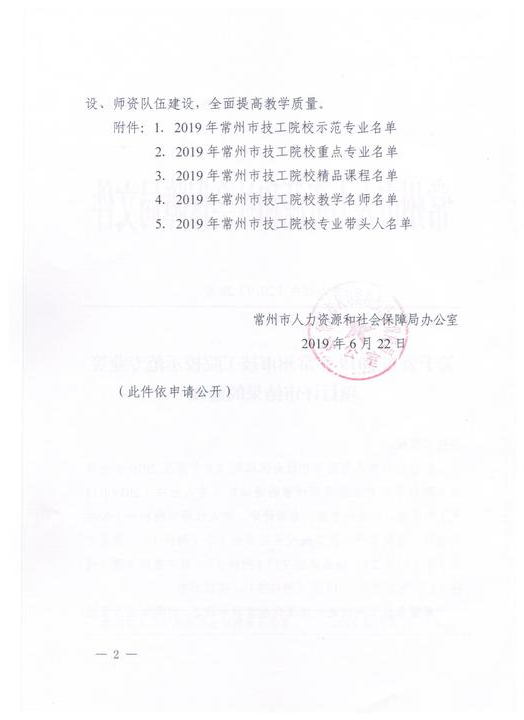 2019年常州市技工院校重点专业等项目评审结果的通知