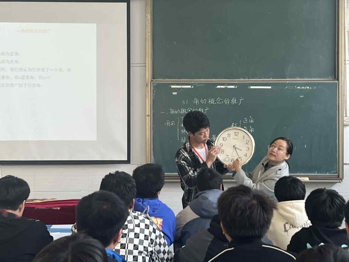 教学过程中,王老师将原本枯燥的教的概念的推广结合生活中的实例鲜活地呈现在学生面前,运用启发式教学方法,便于学生理解掌握。同时王老师使用了几个简单明了的立体,加深了同学们对知识点的把握。语言简练,整堂课都显得从容不迫,游刃有余。