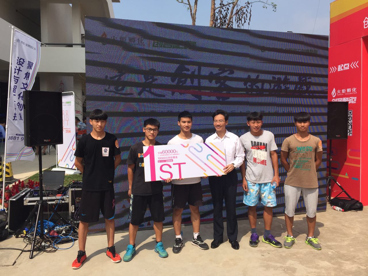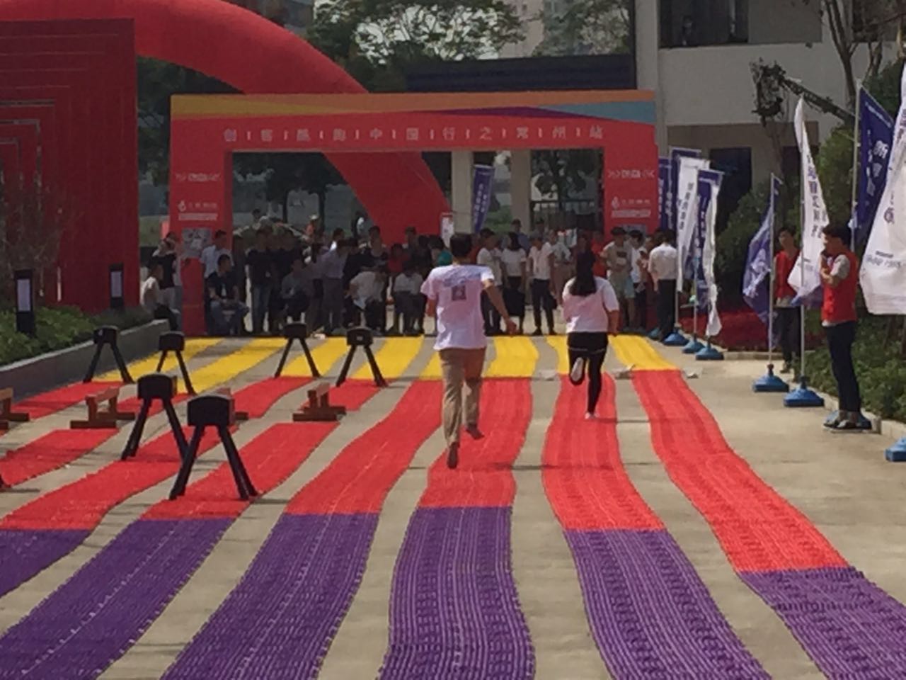 常州冶金技师学院学子在党支部书记汪继诚、团委书记吴连超带领下一行8人参加了外场环节——创客酷跑活动。该活动为趣味运动接力赛,常州冶金技师学院的5名同学经过团体拼搏取得了第一名的佳绩,获得价值6万元的一年创业办公场地使用权和10000元现金创业基金的奖励。新闸街道党委丁书记为我院学生颁奖,并鼓励我院学生在今后的学习、生活中能再创佳绩,为校争光!