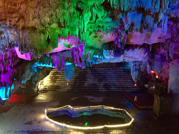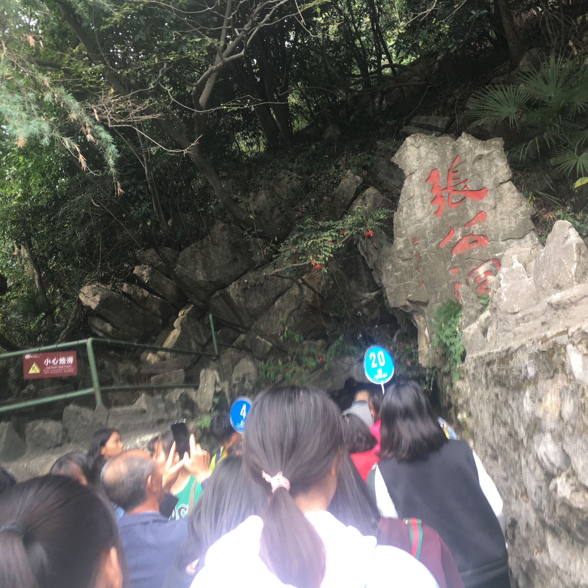 同学们下车到了此行的第一站——张公洞,又名庚桑洞,是著名石灰岩溶洞该洞具大小洞穴72个,各洞的温度又不相同,素有"海内奇观"之称。相传汉代张道陵曾在此修道,唐代张果老在此隐居,故称张公洞,被誉为“宜兴三奇”。