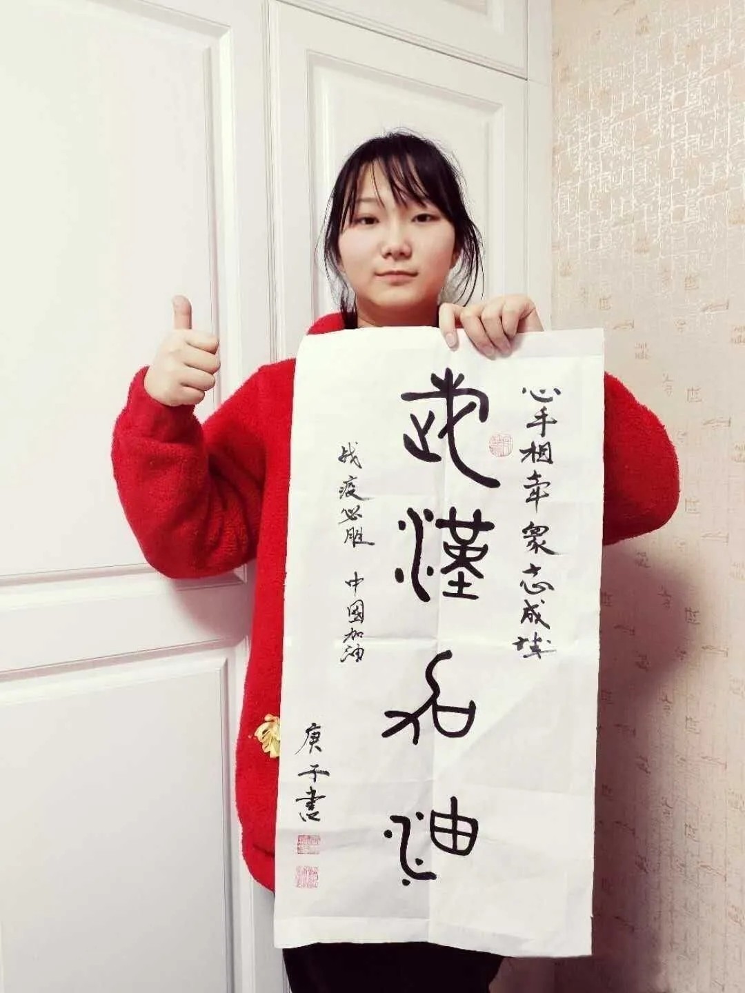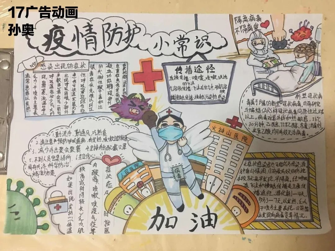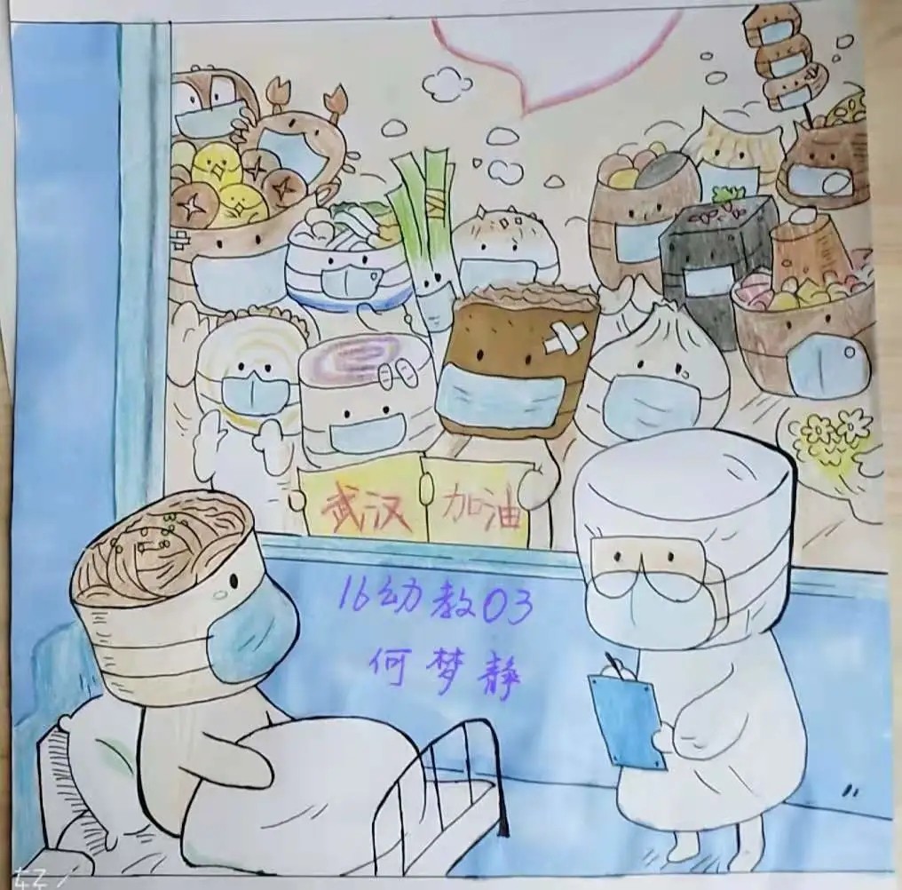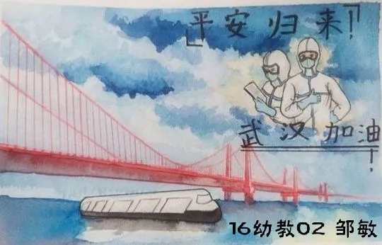 我是来自18幼教04的张静,现是一加爱心社龙城小明团队的一员。在2020年的一开始,本应该一切都世阖家团圆的日子,却因为一场疾病的到来而发生了改变,一切都由动而变成了静。许多医务人员不顾自己的生命危险,挺身而出,在第一线与病魔战斗着,而我作为一名志愿者,在队长李明的代理下,也参加了抗议防疫的战争,在公交车上帮助了乘客量测体温等,贡献出了自己的一份力量。我为我自己贡献出一份力量而感到高兴。非典时期我还是个未经世事的孩子,所以生死国事感觉离我很遥远,这次疫情从第一时间起关注,看到了人生苍茫如白驹过隙,和平年代家国情怀中闪耀人性的一切美好,愿一线的医护人员平安归来,所有还在岗位保障人民日常生活牺牲个人利益的人们,一起加油。@18幼教04的张静把最美的祝福送给战斗在抗击新型冠状肺炎一线的医护人员、安保人员、保洁员,以及所有为打赢防疫攻坚战付出的人们;送给武汉市民,你们以高度的自我奉献精神配合“封城”,为防止疫情扩散做出牺牲;送给所有关注和支持抗击疫情的人们,祝你们身体健康,新春快乐,鼠年吉祥!众志成城,必将战无不胜。武汉,我们永远在一起,加油! @16数车01--李志 一幅幅战“疫”作品