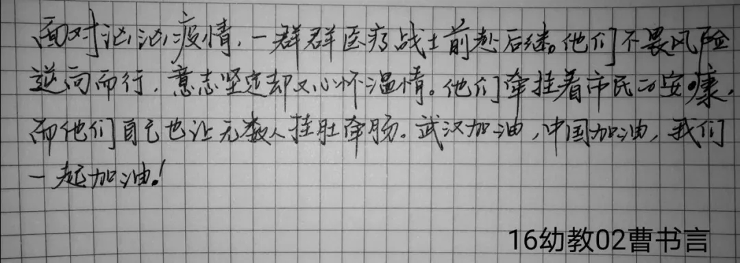 用心灵点燃生命的灯,用坚强编织美丽的彩虹,伸出温暖的手,2020才刚刚开始,让我们向所有在奋战防疫一线的医务工作者和工作人员致敬! 因为有你们在替我们负重前行!希望所有的朋友能够平安健康! 早日赢得这场战役!全国人民都会是你们坚强的后盾! 武汉加油!中国加油!@16幼教03杨慧佳