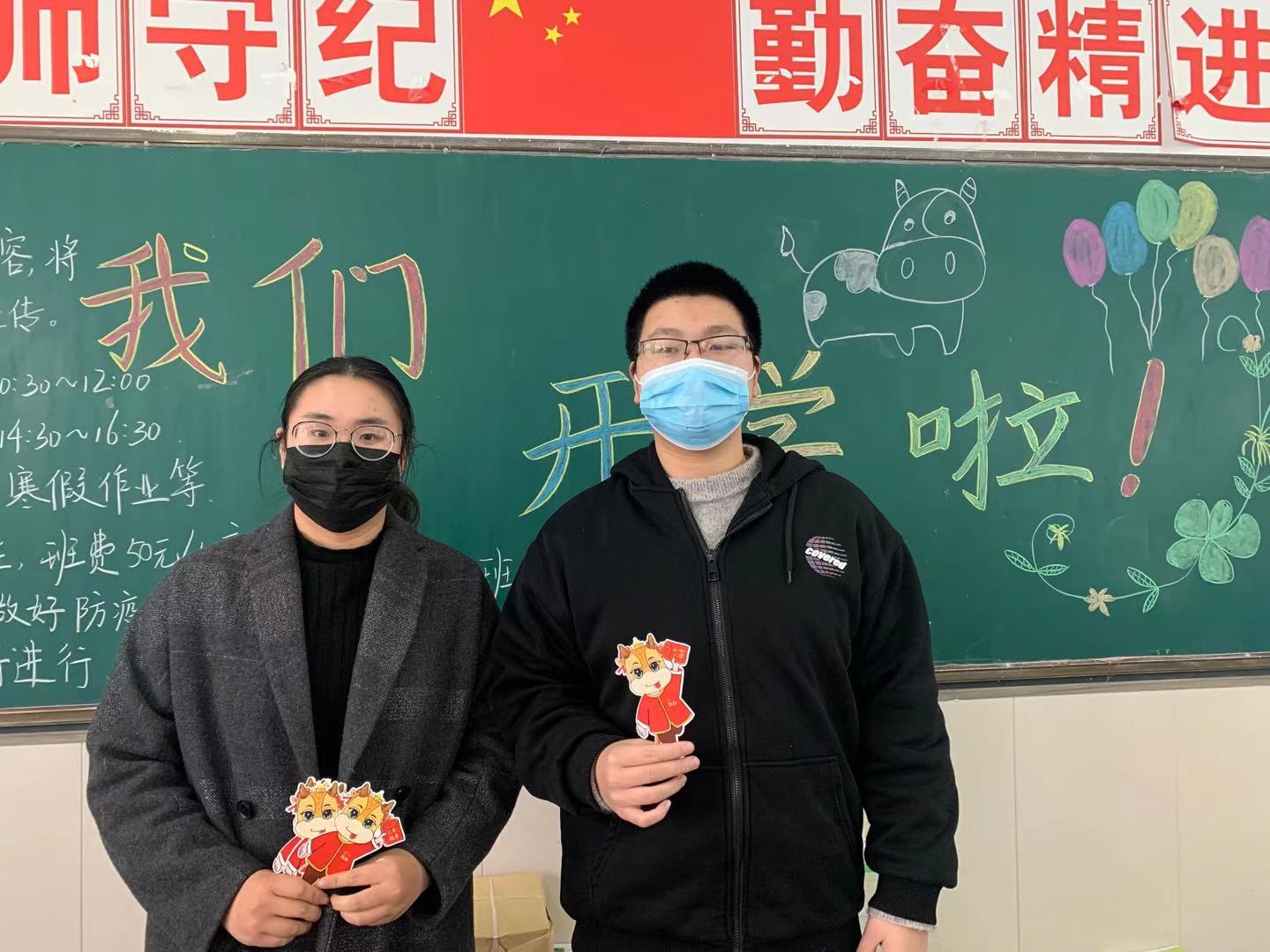 机械工程系全体老师也早布置好教室,领好书本,等待同学们的回归。系部领导也深入走访各班,检查和指导新学期开学工作,给班主任和同学们发放福卡,希望系部师生们能发扬孺子牛、拓荒牛、老黄牛的“三牛”精神,也祝愿他们在新的一年能健康、快乐、平安。师生们收到了学校的福卡,心底都感受到了一丝温暖。